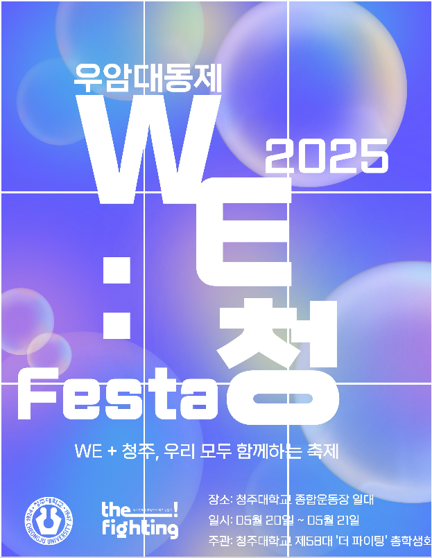 2025 청주대학교 우암대동제(W.E:청 FESTA)가 5월 20일(화)부터 5월 21일(수)까지 청주대 종합운동장에서 개최됩니다.