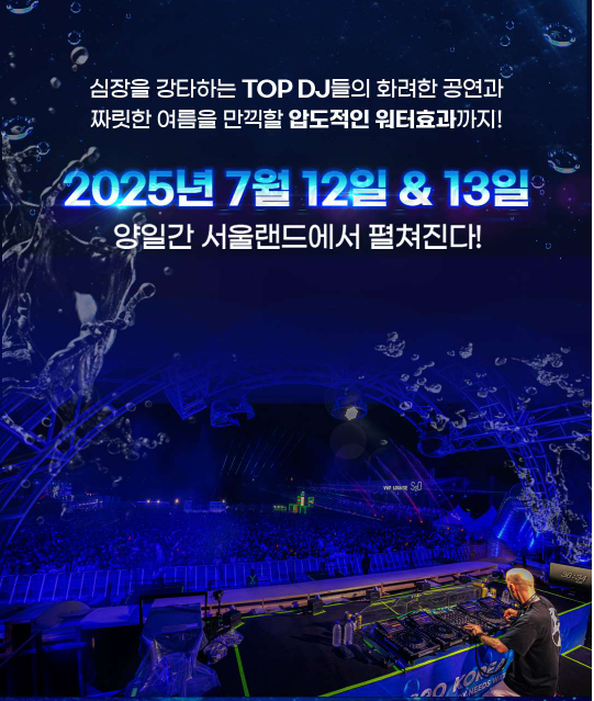 물과 음악이 결합된 국내 유일의 WATER EDM FESTIVAL, S2O KOREA가 2025년 7월 12일~13일, 서울랜드에서 펼쳐집니다.