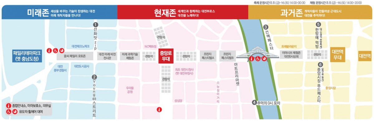 대전의 중심지인 충청남도청구청사를 비롯해, 중앙로 일대까지 축제 공간이 확장됩니다.