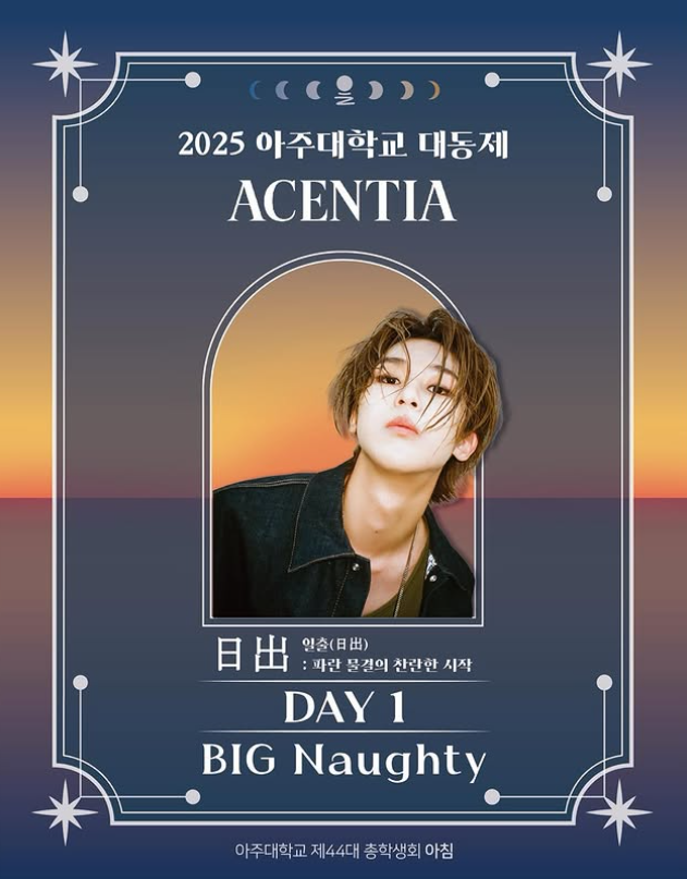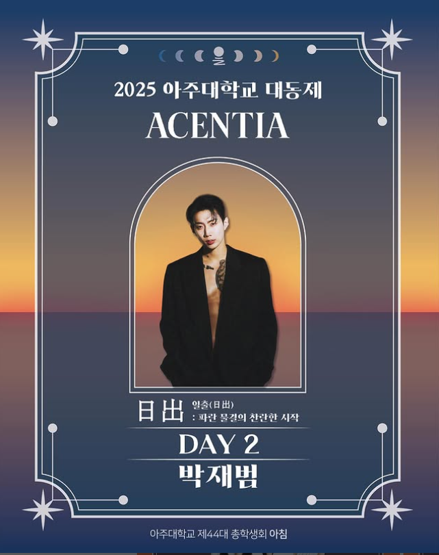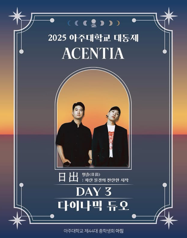 2025년 아주대 대동제 <ACENTIA>는 **‘日出(일출)’**을 주제로 합니다.